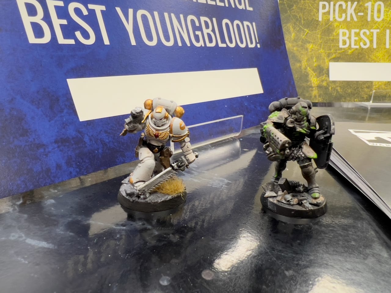 My youngest won first prize in the youngblood category in our local Warhammer shop’s anniversary painting competition: