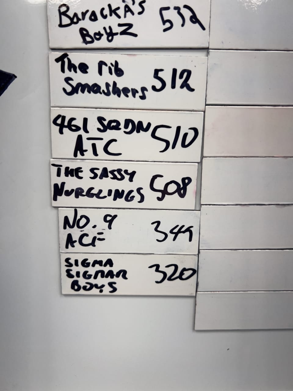However, youngest and her friends didn’t do so well on the trivia challenge. They got all the questions right, but rolled low pretty much all the time. And given that the points were dependent on the rolls, the Sigma Sigmar Boys were’n’t exactly lighting up the leaderboard: